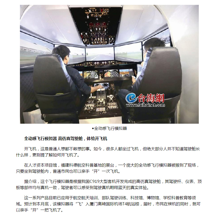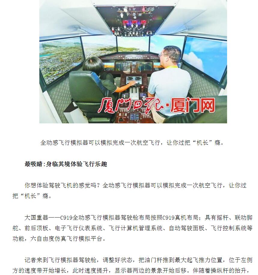 C919國(guó)產(chǎn)飛機(jī)全動(dòng)感飛行模擬器駕駛艙亮相后引來(lái)各大媒體體驗(yàn)報(bào)道。