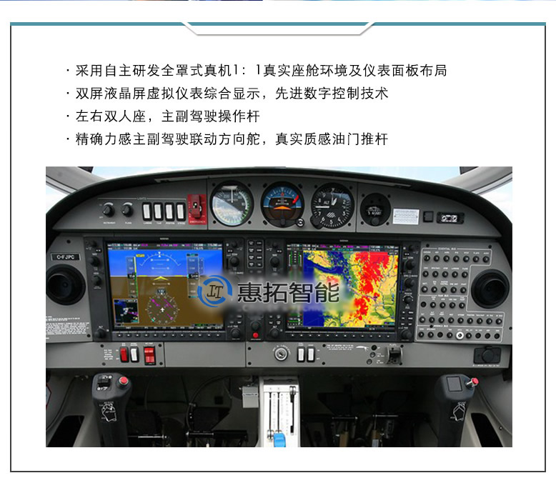 惠拓-KAD40動感飛行模擬器,高仿真。惠拓-KAD40,真機是先進的四座儀表飛機,飛機性能優良,操作簡單,仿真惠拓-KAD40飛機模擬器,模擬器飛機模擬器采用全罩式真機真實座艙環境及儀表面板布局;雙液晶屏虛擬儀表綜合顯示,數字控制技術。